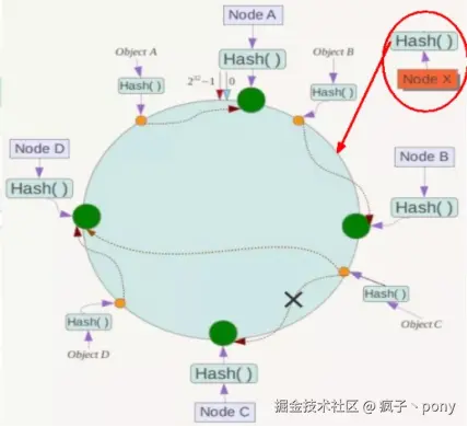 扩展性:数据量增加了,需要增加一台节点NodeX,X的位置在A和B之间,那受到影响的也就是A到X之间的数据,重新把A到X的数据录入到X上即可,不会导致hash取余全部数据重新洗牌。