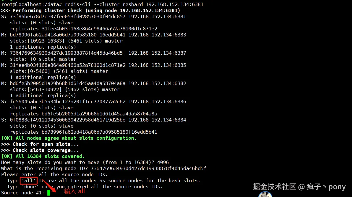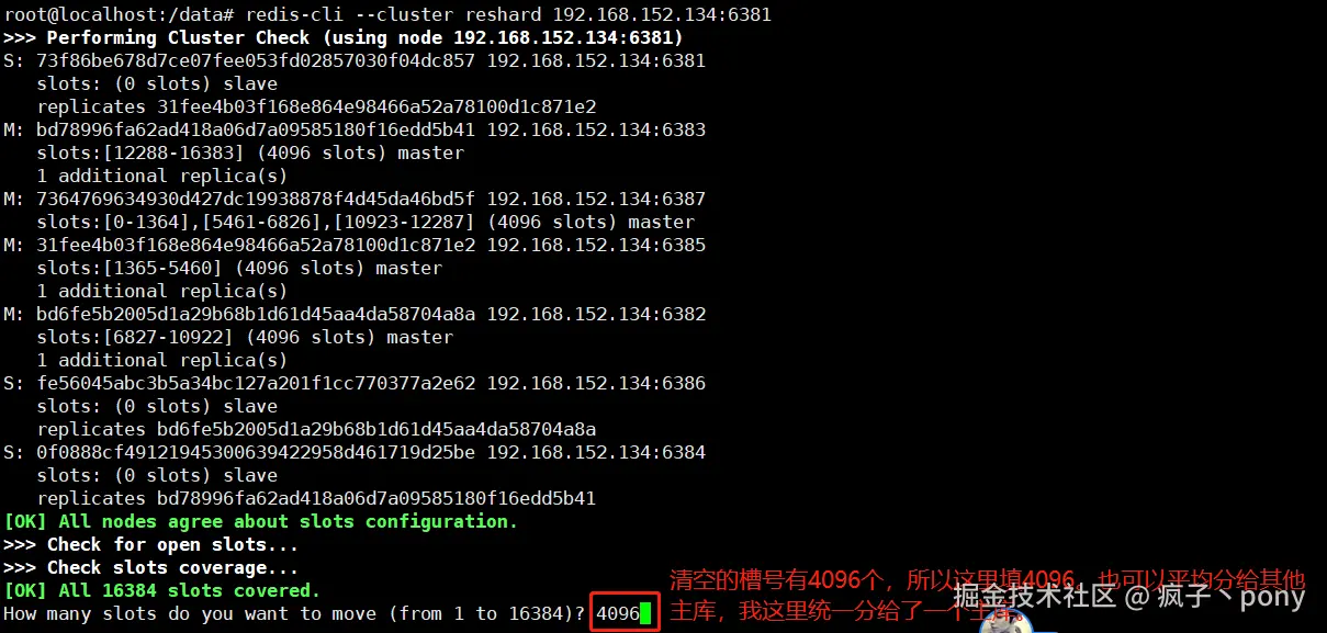 # 命令:redis-cli --cluster reshard IP地址:端口号