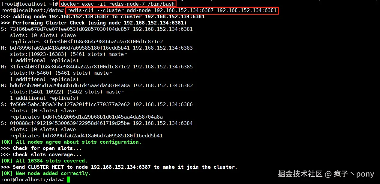 # 命令格式:redis-cli --cluster add-node 自己实际IP地址:6387 自己实际IP地址:6381