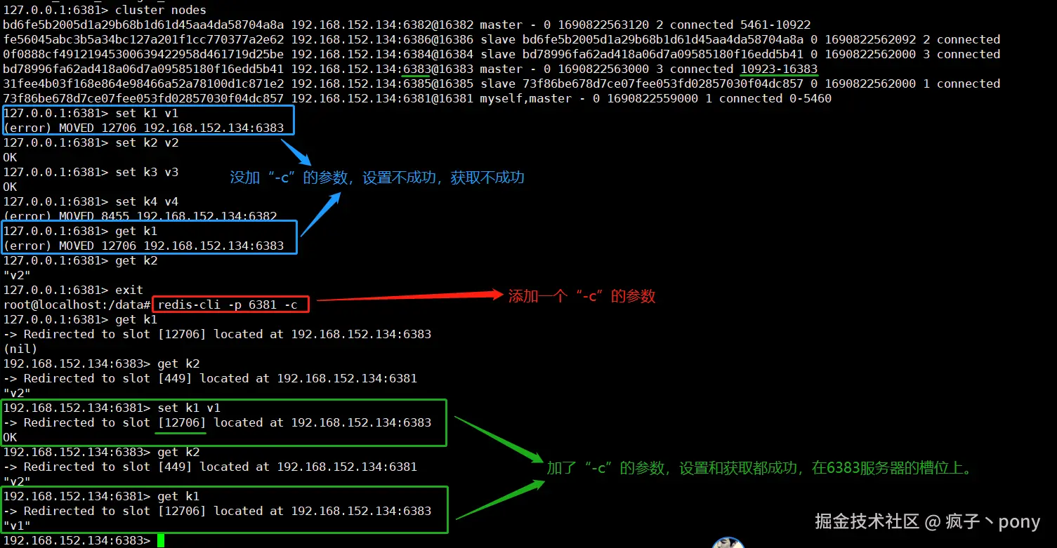 我们在连接redis的时候需要添加一个参数,才能正确的选择存储路由,防止数据存储失败。正确的命令为【redis-cli -p 6381 -c】