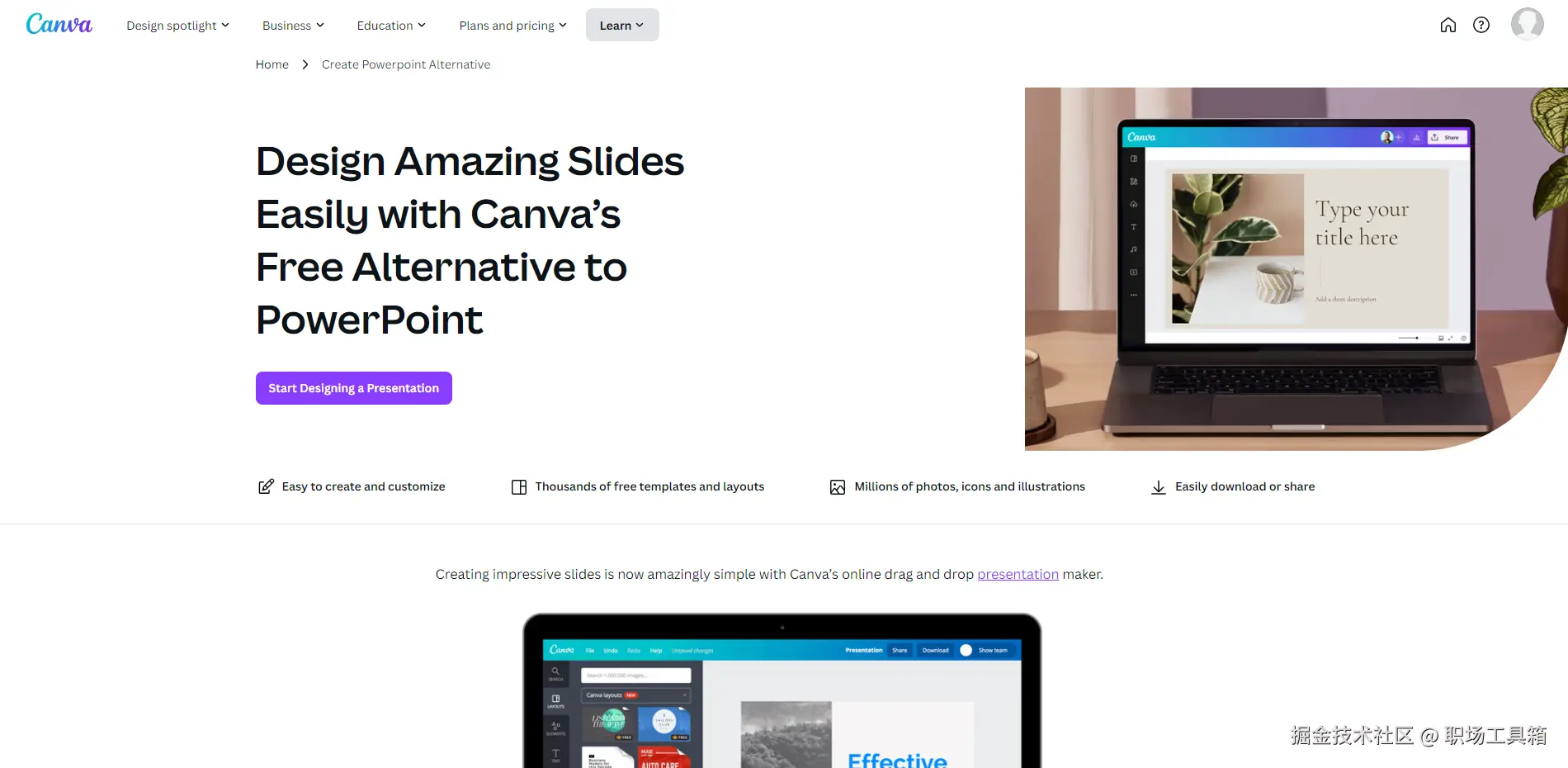Canva AI PPT主要以网页应用形式提供服务,同时也有iOS和Android移动应用。它支持与Google Drive、Dropbox等云存储服务集成,方便用户管理和分享文件。此外,Canva还提供了API接口,允许开发者将其功能集成到其他应用中。