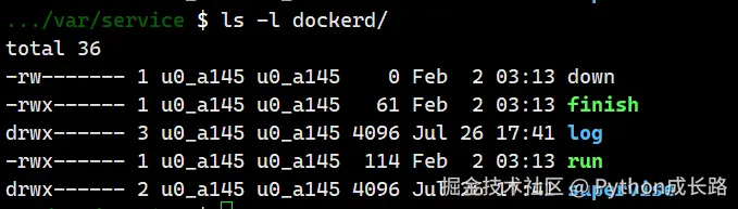 自启服务的管理目录是在$PREFIX/var/service,因为我们安装了sshd和docker,所以现在已经有两个服务。