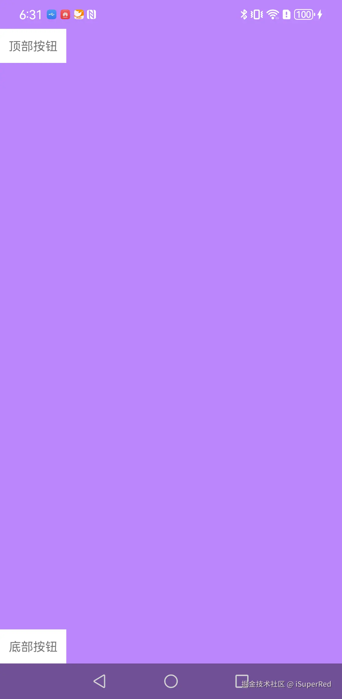 运行后,我们看到顶部和底部按钮都设置了安全距离。