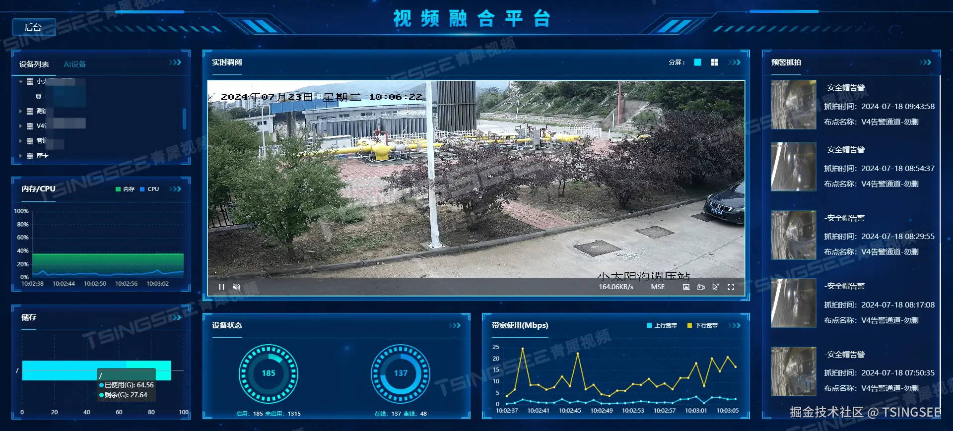 TSINGSEE青犀AI智能分析网关灭火器检测AI算法是一种结合了计算机视觉和深度学习技术的智能识别技术。该算法通过分析监控摄像头捕捉的图像或视频数据,来识别灭火器的存在、位置等信息。灭火器检测算法可以自动识别出加油站的灭火器,若检测到相关消防物品未正确放置/或缺失则自动告警,并将告警结果推送至管理中心。