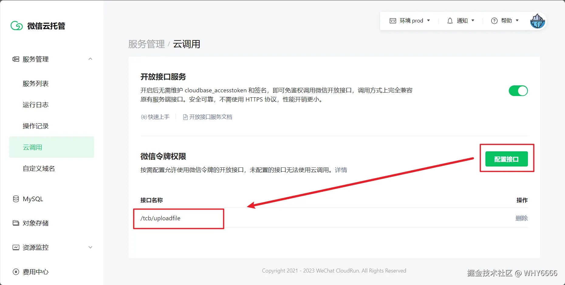 接下来需要在微信云托管控制台-「微信令牌权限配置」中添加/tcb/uploadfile:
