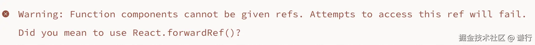 ref 放在原生 html 标签上时,React 会将 ref.current 属性设置为相应的 DOM 节点,但如果把 ref 放在 React 组件上,默认会返回 null。React 不允许组件访问其它组件的 DOM 节点,甚至自己的子组件也不行,手动操作另一个组件的 DOM 节点组件强依赖于其它组件的内部实现,在开发环境 React 还会给出错误提示