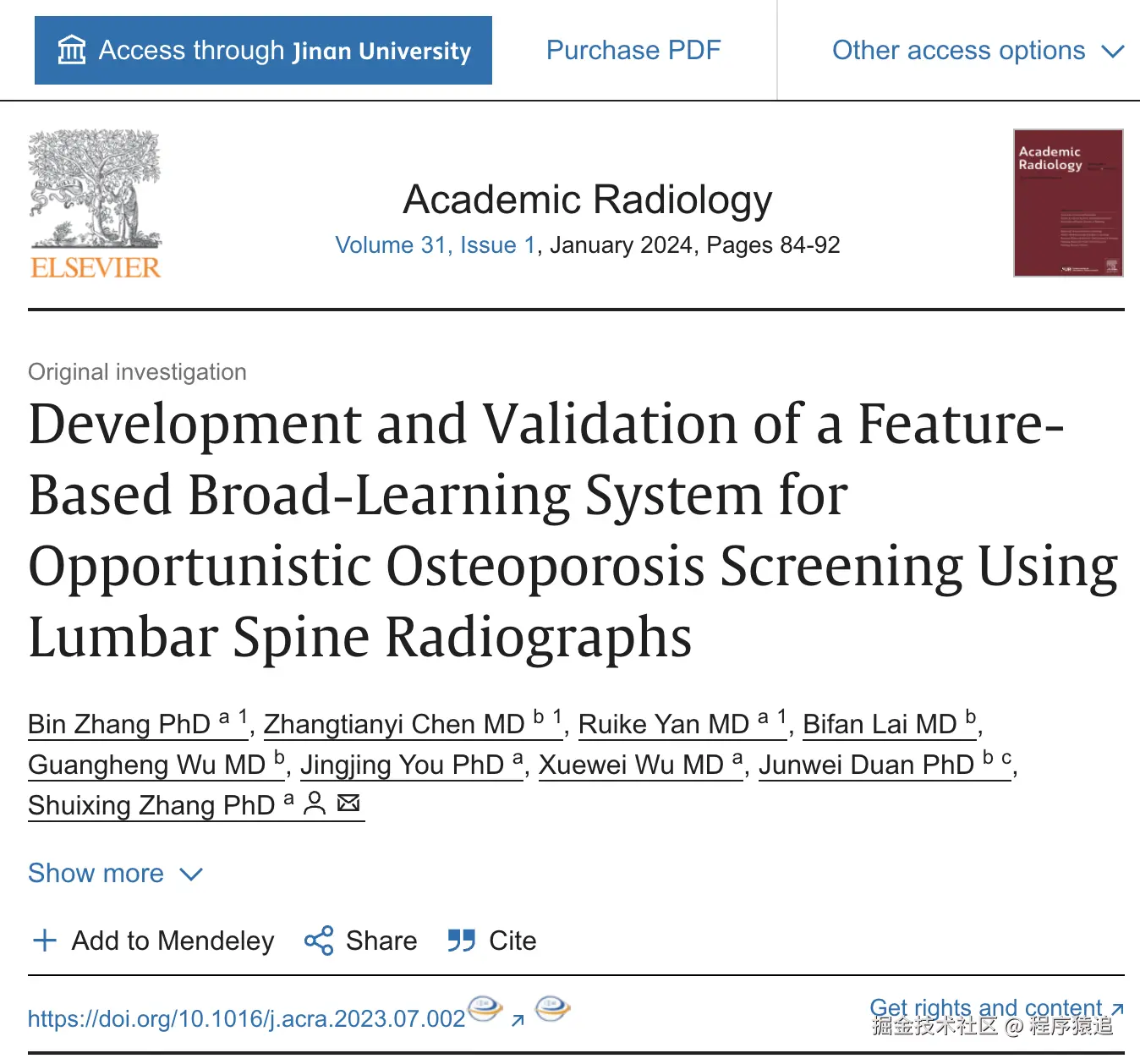 发表在影像学经典期刊《Academic Radiology》上的论文《Development and Validation of a Feature-Based Broad-Learning System for Opportunistic Osteoporosis Screening Using Lumbar Spine Radiographs》第一次阐述了在智慧医疗领域,纹理特征和卷积特征对于医学影像信息的抽取功能有什么差异,并给出了具体实验验证和指标分析。