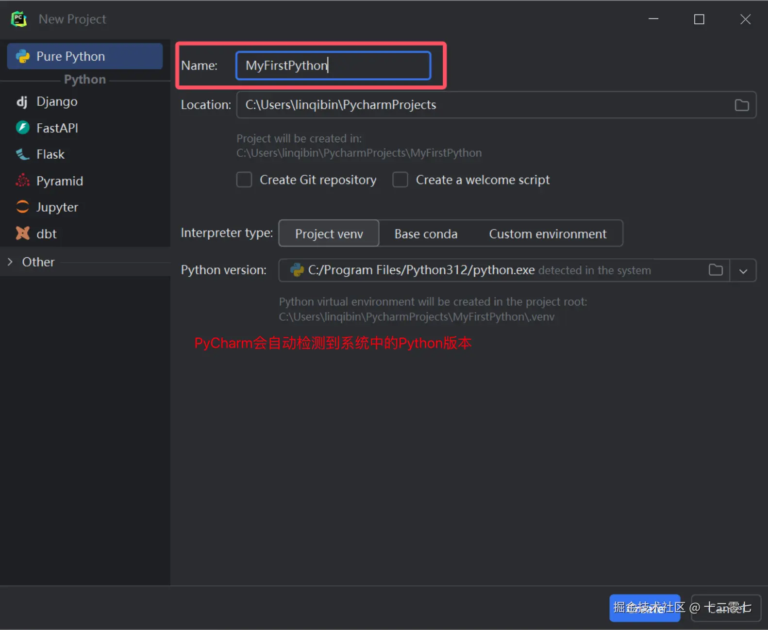 打开PyCharm后,点击 New Project 创建一个新的Python项目: