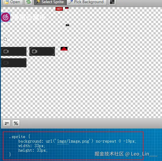 实际开发中,美工应该给出每个小图片的位置和大小,如果没有,可以在www.spritecow.com/上上传精灵图后得到每个小图标的位置和大小。该网站的使用如下图。