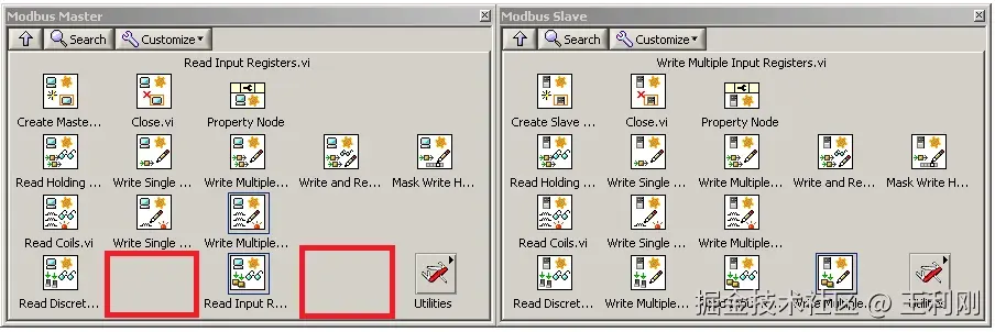 图 3:显示功能代码的 Modbus 主机和从机调色板