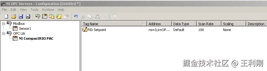 在配置了 NI OPC 服务器之后,您可以配置 OPC I/O 服务器与这些标签通信。虽然 Modbus I/O 服务器被配置为访问寄存器,但 OPC I/O 服务器被配置为访问 OPC 服务器中的标签。
