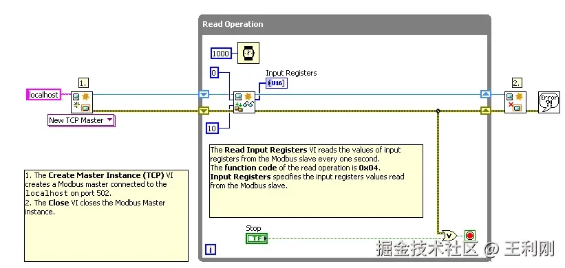 如果此设计满足您的应用需求,或者您对更复杂的 Modbus 通信示例感兴趣,请在示例查找器中查看 Redundant Modbus Masters.lvproj。