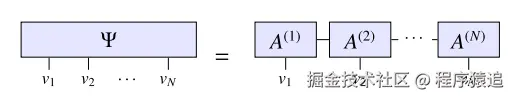 如何对∣Ψ(v1,v2,…,vN)∣2∣Ψ(v1,v2,…,v N)∣2进行合适的建模使得模型既不复杂,又在一定程度上能够表示更多不同种类的构型成为现在需要解决的问题。许多已经开发的表示方法和算法可以用于高效的概率建模。在这里,我们使用矩阵积状态(MPS)对波函数进行参数化: