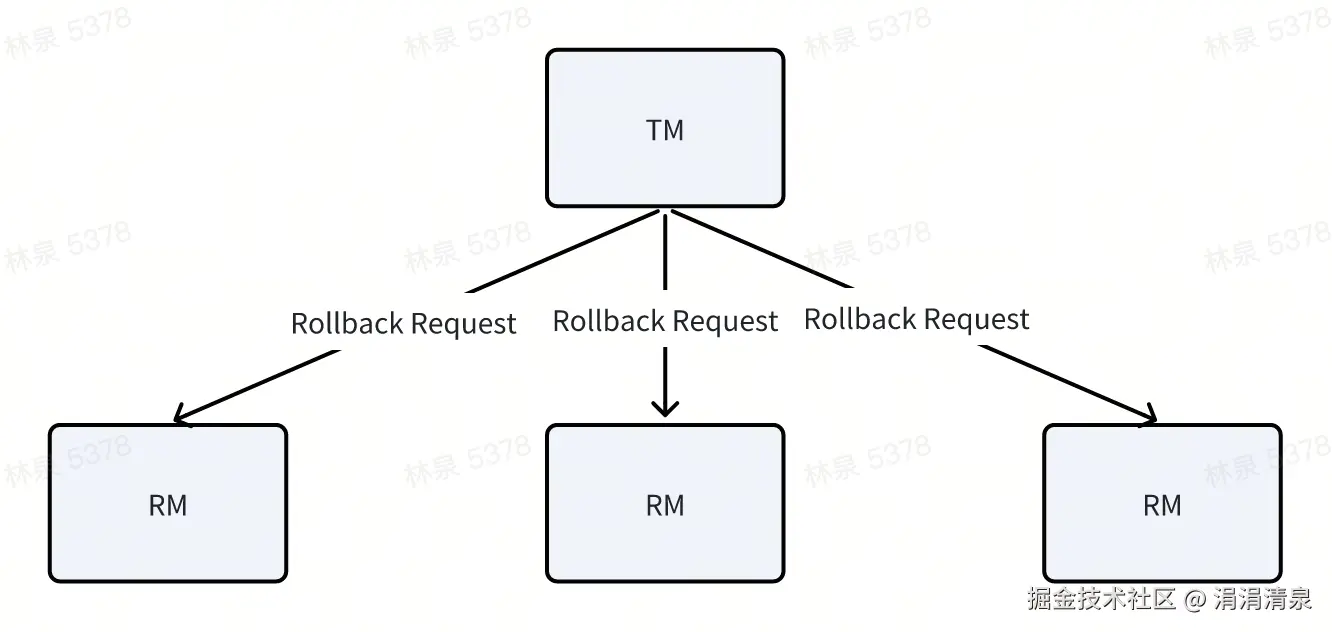 - 否则,TM 向RMs 发送 Rollback请求。