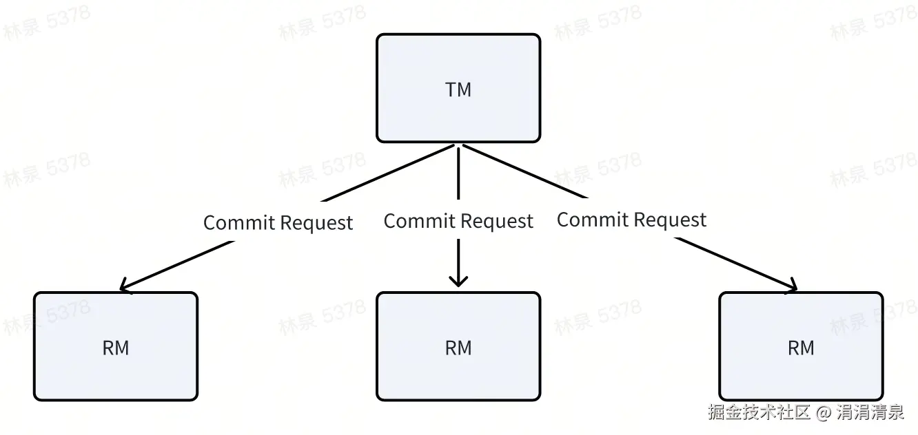 - TM 收集所有 RMs 的响应。如果所有 RMs 都返回“Prepared”状态,TM 在第二阶段提交请求;如果有任何 RM 返回了“Failed”状态,TM 在第二阶段回滚请求。