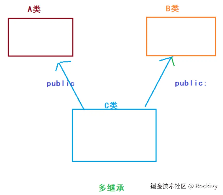 class D :public C, public B //多继承构造顺序只和这个地方顺序(继承顺序)有关