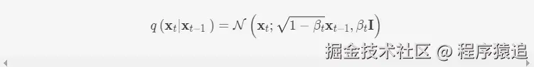 数据集中的样本x0x0是从一个真实分布q(x0)q(x0)中抽取得到的。在前向过程中,对于每一步tt都会在前一步样本xt−1x t−1的基础上添加高斯噪声从而得到一个新的样本xtx t, 每一步的噪声大小可以用参数βtβ t来控制