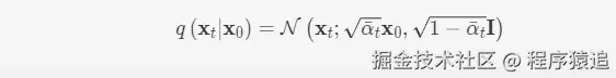 前向过程中一个很好的特性是任意步t下的加噪数据样本xtx t都可以直接由x0x0直接给出,免去了循环迭代的过程,使得前向过程在该模型中变得十分简单,即