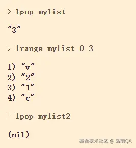 - 如果该key不存在,返回nil;如果key存在,返回链表的头部元素