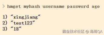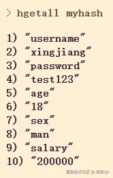 hgetall key:获取key中的所有filed-vaule (字段名+字段值全部输出)