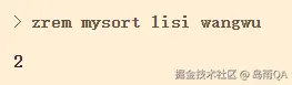 zrem key member [member...],移除集合中指定的成员,可以指定多个成员