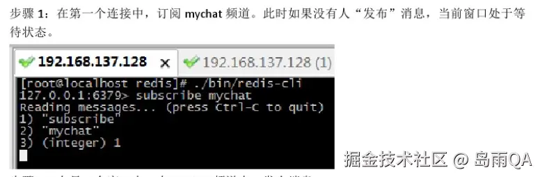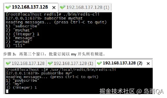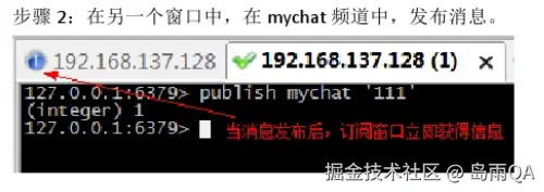 subscribe channel:订阅频道,例:subscribe mychat,订阅mychat这个频道psubscribe channel*:批量订阅频道,例:psubscribe s*,订阅以”s”开头的频道publish channel content:在指定的频道中发布消息,如 publish mychat 'today is a newday'