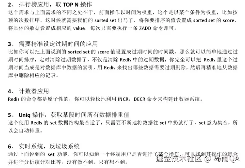- 大型在线游戏的积分排行榜,积分发生变化,可通过zadd命令更新,然后通过zrange获取。