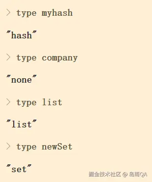 type key:获取指定key的类型。该命令将以字符串的格式返回。返回的字符串为 string、list、set、hash和zset。如果key不存在返回none