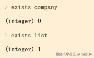 exists key:判断该key是否存在,1代表存在,0代表不存在