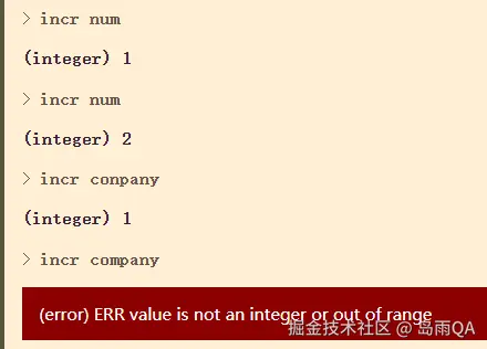 incr key:将指定的key的value原子性的递增1。如果该key不存在,其初始值为0,在incr之后其值为1。如果value的值不能转成整型,如hello,该操作将执行失败并返回相应的错误信息。