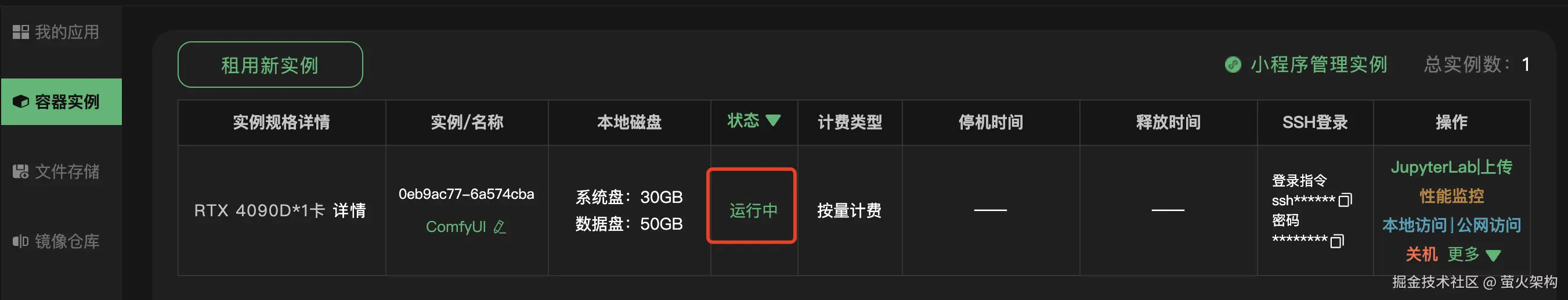2、在容器实例页面,可以跟踪实例的状态,进行各种管理操作。