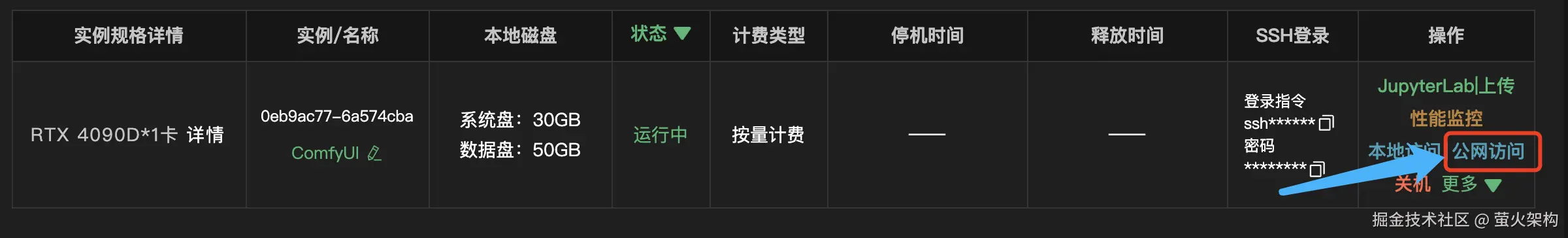 4、回到实例列表页面,点击“公网访问”,复制后在浏览器中打开。