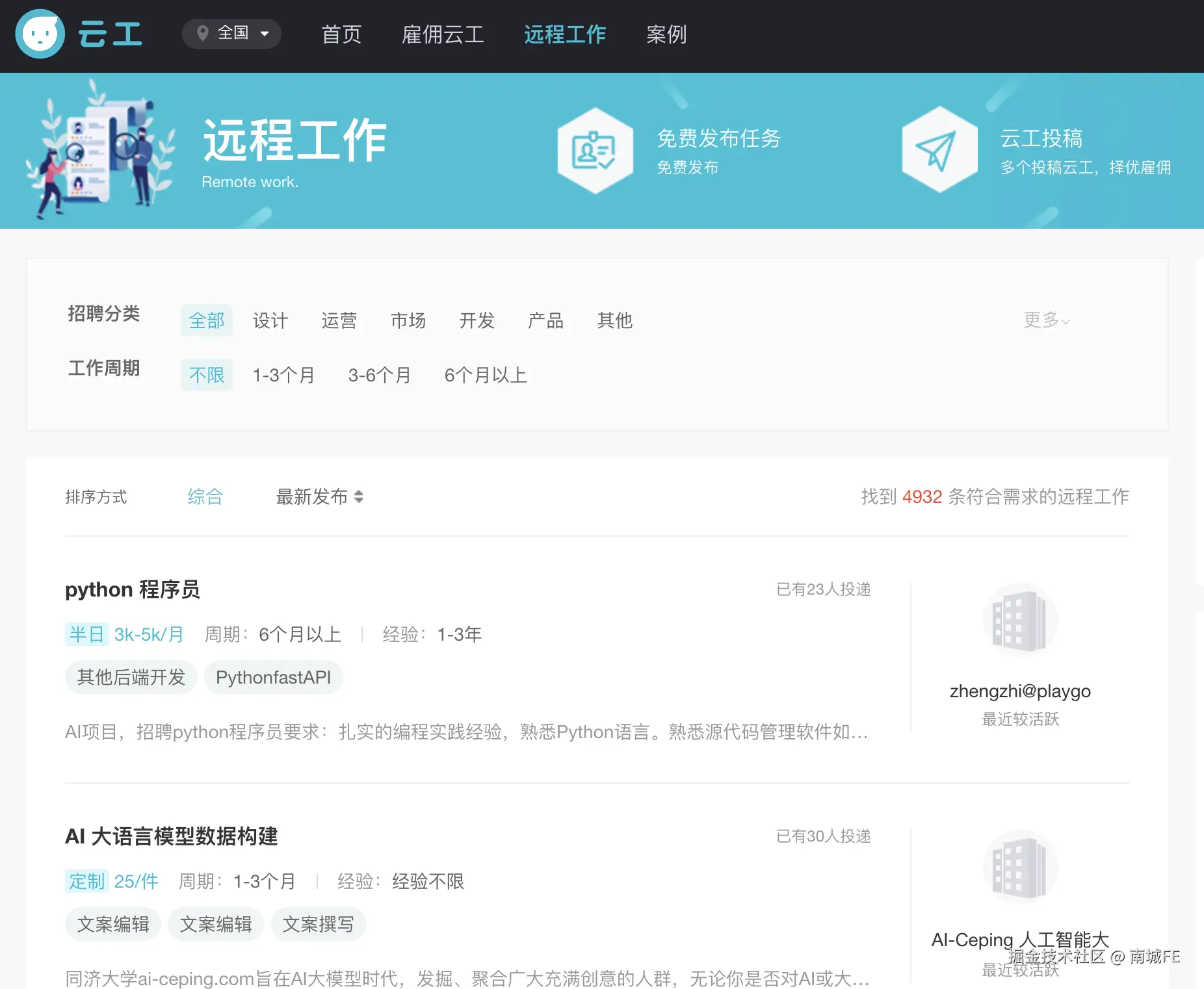 云工网提供最新全职兼职远程工作、远程办公招聘信息展示,支持各类远程工作者免费入驻,是一个远程招聘人才的平台。