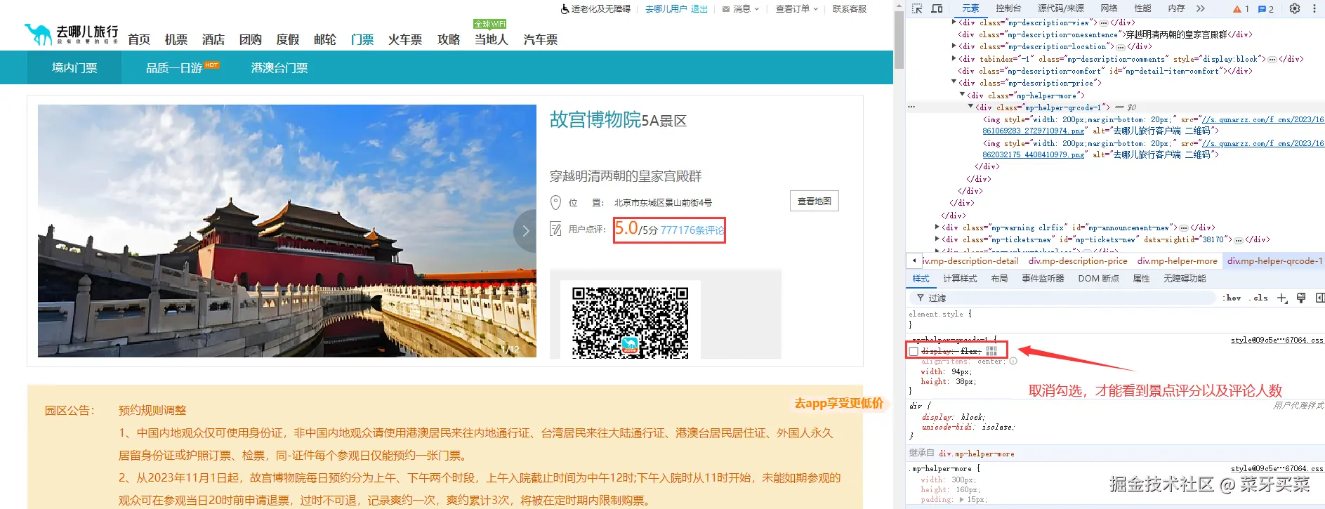 进入到景点详情页,解析页面,获取景点的【评分、评论人数、评论数据】