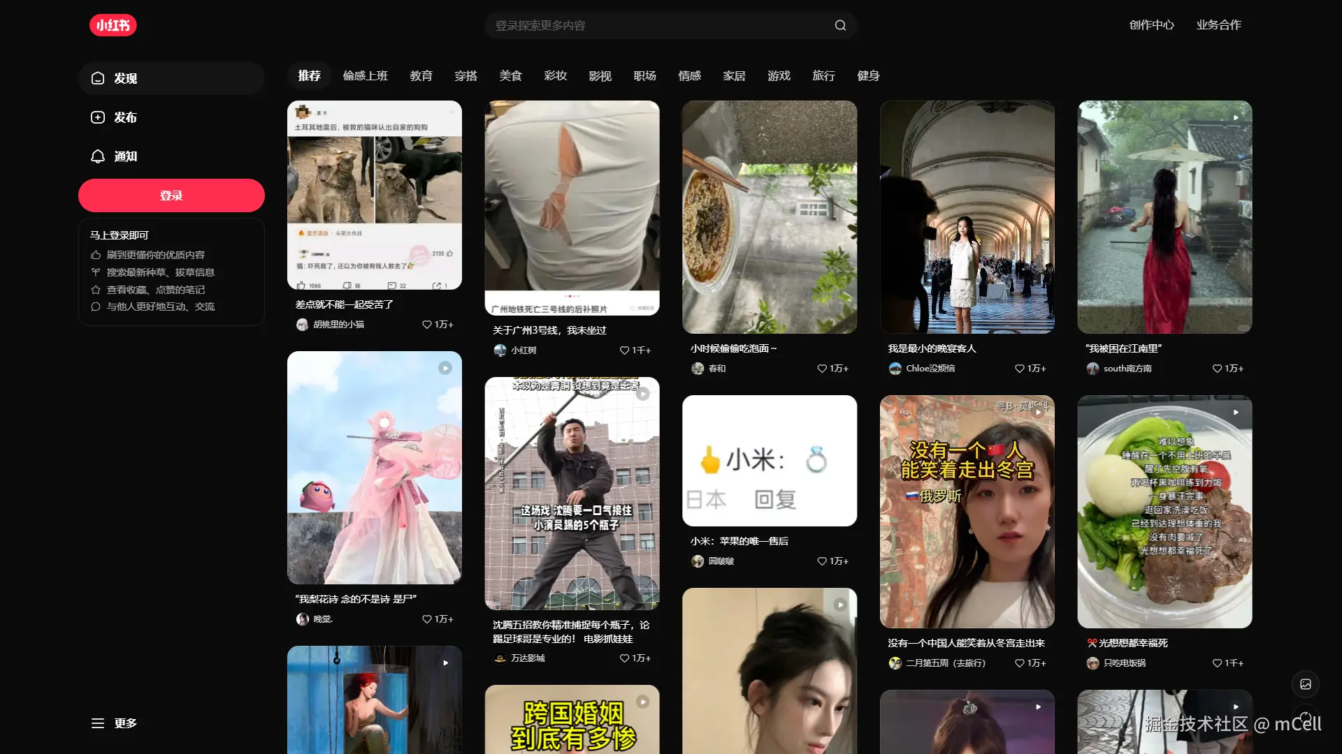 关于触底加载更多,一个非常典型的场景就是小红书的首页(小红书的首页有不少前端知识呢,后期有机会讲讲),比如当我们一直往下滑动的时候,就会一直加载内容,,,,