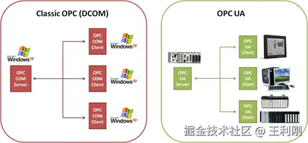 经典 OPC COM 基于服务器需要 UA 包装器与 UA 客户端进行交互。
