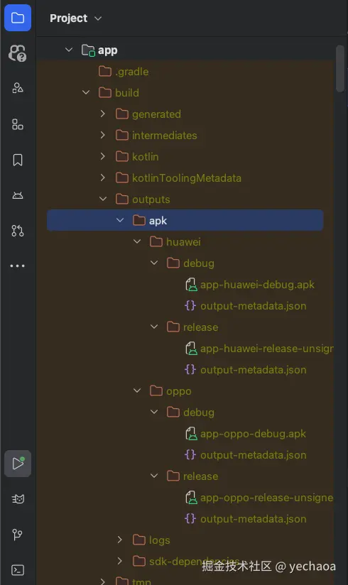 以华为、OPPO为例,在app/build.gradle文件中配置多渠道: