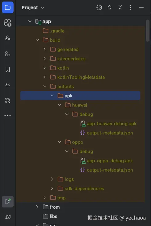 在oppo渠道配置中,指定代码路径,这样,在oppo渠道变体进行编译时,就会把src/huawei/java目录的代码进行融合,从而实现复用huawei渠道代码的功能了。