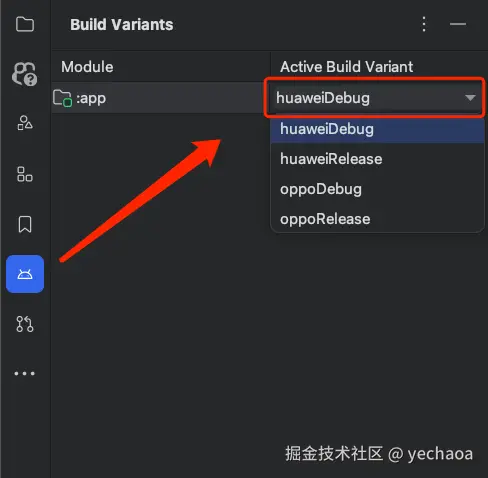 在配置完多渠道之后,打包方式跟平常的Run有些区别,以前是单一的构建变体,现在是多种组合的构建变体了,选择性也更多了。