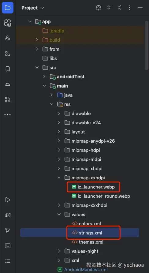 - 如有同名配置资源,例如strings.xml文件中的app_name,则优先取渠道(huawei)配置资源进行覆盖,其他不同名的则进行合并;