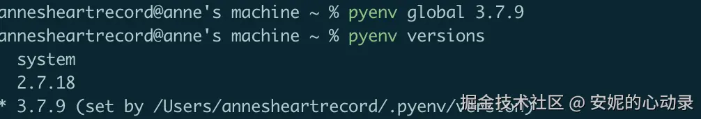 pyenv versions能看到现在使用的是系统指定版本