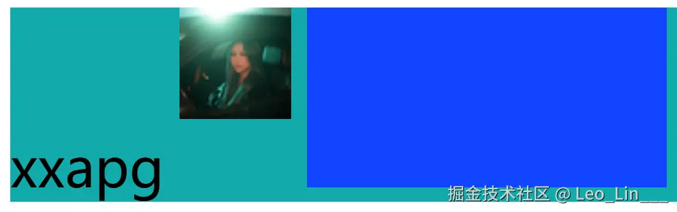 注意,此时如果仅给img设置vertical-align为top而不给右边的蓝色盒子设置,会出现如下图的情况。