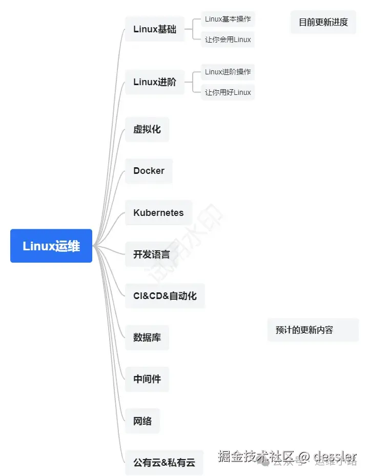 作者介绍:简历上没有一个精通的运维工程师。希望大家多多关注我,我尽量把自己会的都分享给大家,下面的思维导图也是预计更新的内容和当前进度(不定时更新)。