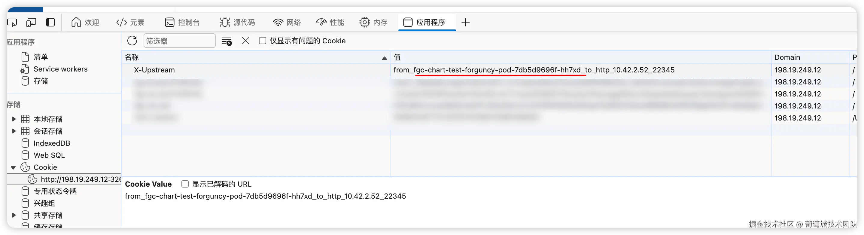 将其中的 ShowXUpstream 的值设置为 true 即可。重置 pod 数量后,可以通过 cookie 查看被指向的 pod 节点名称。
