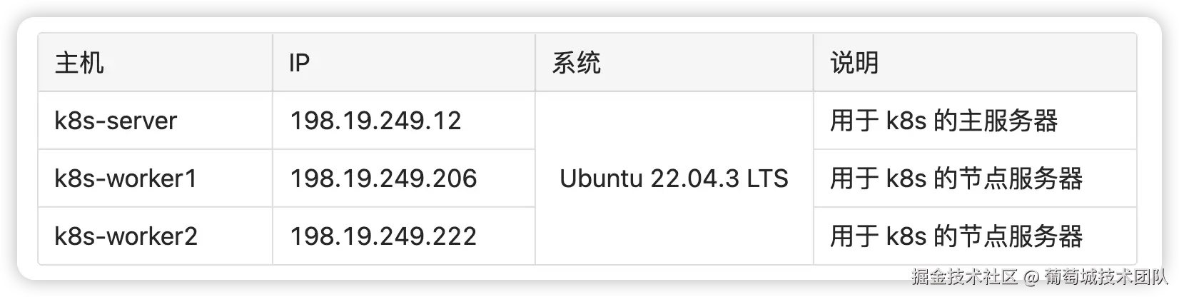 环境是软件运行的基础,所以我们需要准备一个至少拥有两个节点的K8s环境,一台文件服务器,一个镜像仓库。k8s作为集群部署方案 ,硬件设备至少需要两个节点以上。在本示例中,准备了3个节点,节点情况如下: