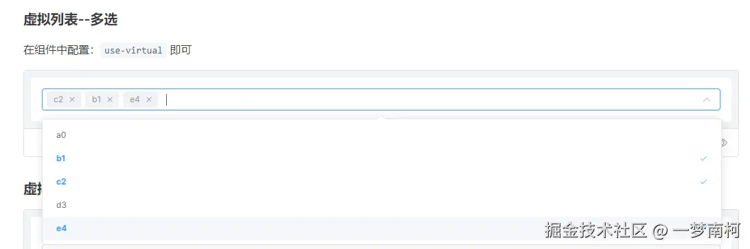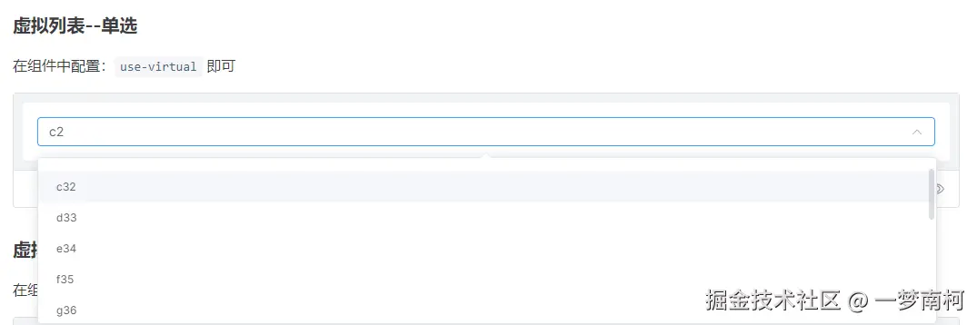 useVirtualprop 的值动态切换组件类型,支持虚拟滚动版本。 - 自定义选项:通过插槽和