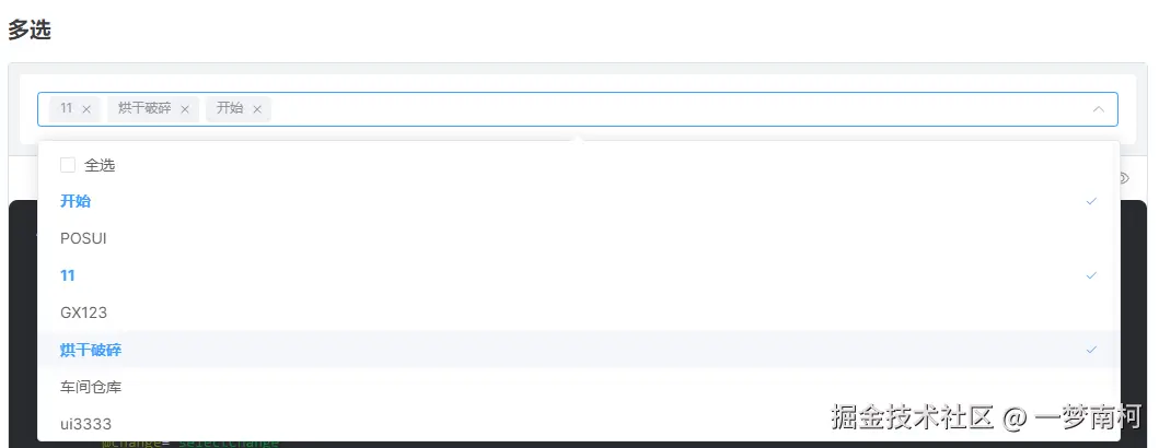 customLabelprop 允许用户自定义选项的显示内容。 - 全选/取消全选功能:在多选模式下提供全选/取消全选的能力。