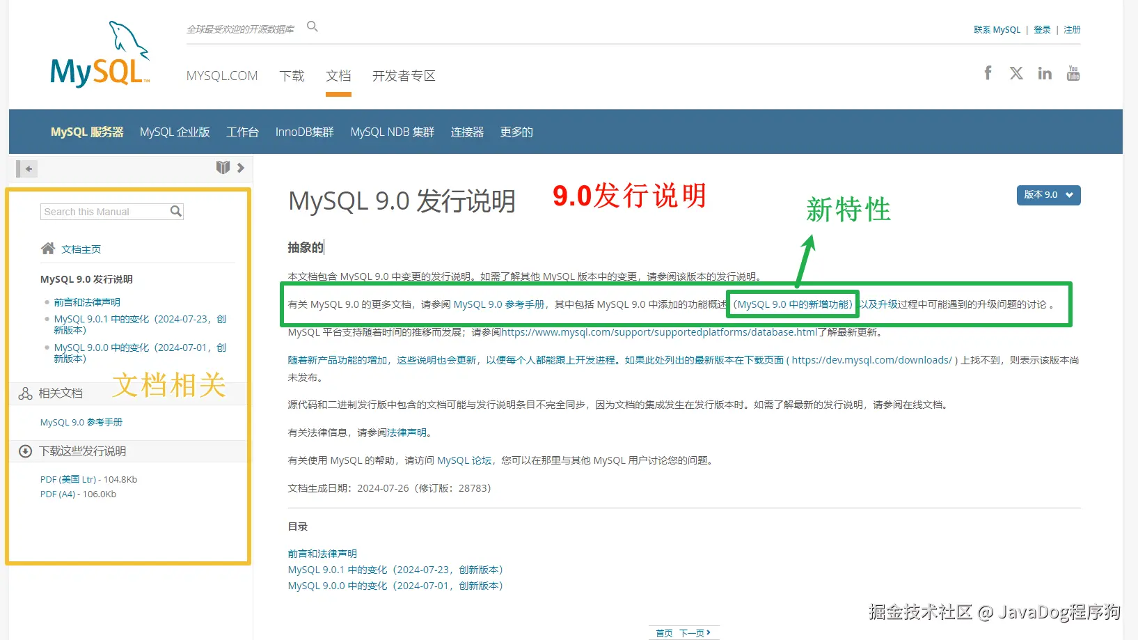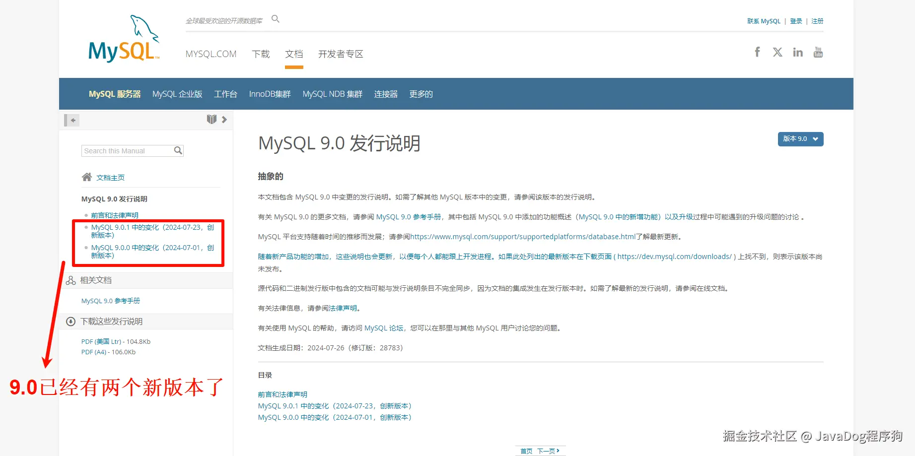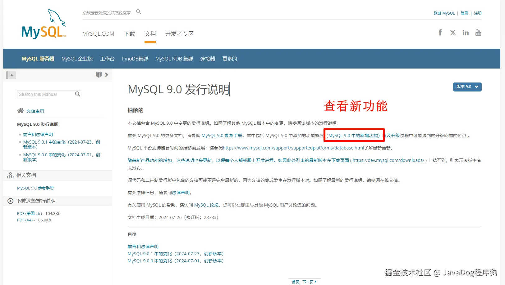 于是乎,摸鱼的狗哥就贱呼呼打开了MySQL官网,小手这么一搜,果然MySQL9.0已发布多日,本狗流下了落后的泪水