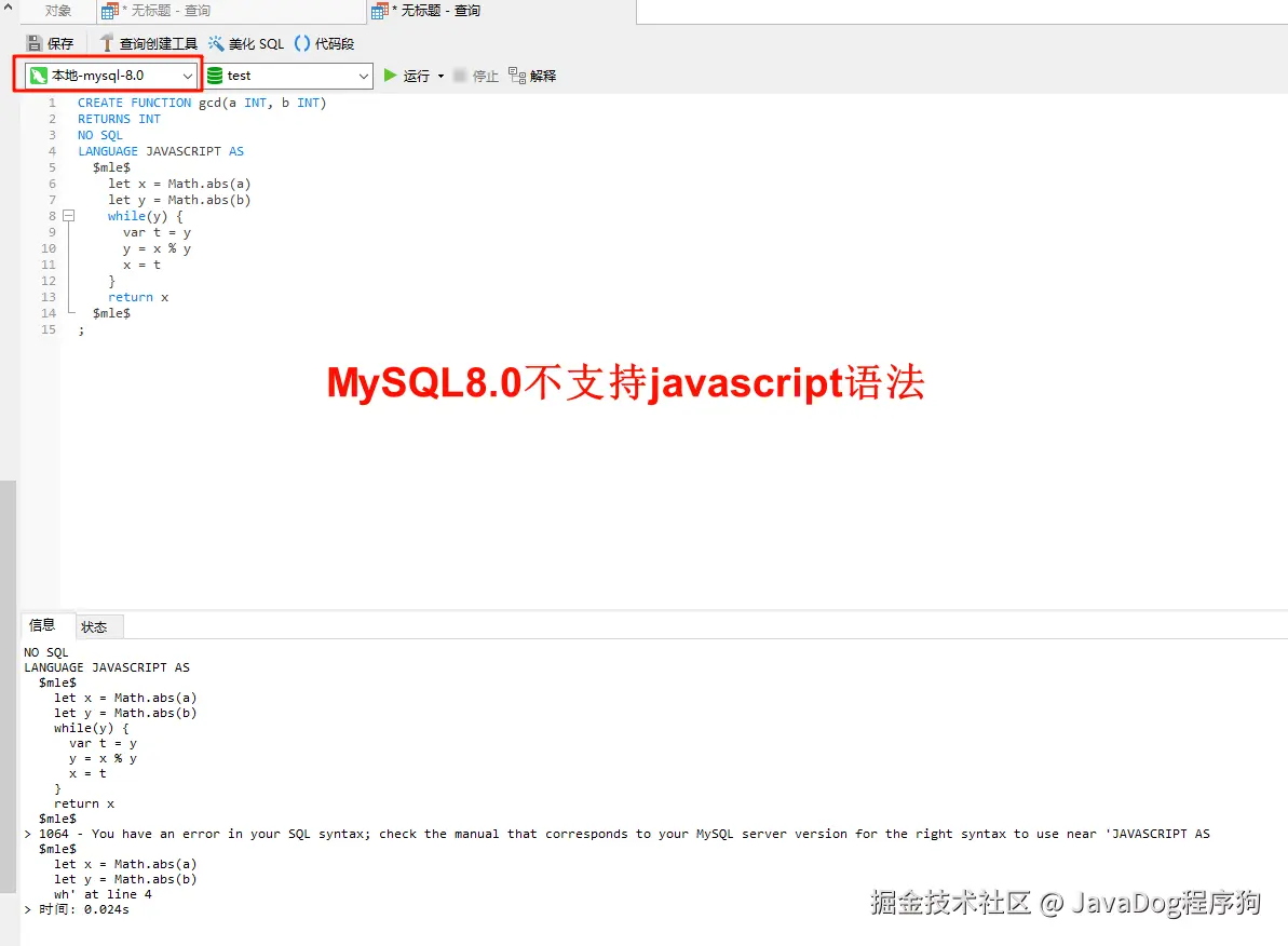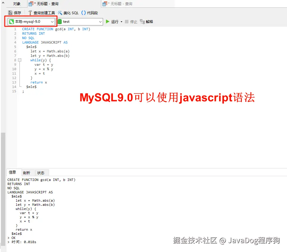 就是MySQL9.0之前不支持JavaScript写存储程序,现在支持了