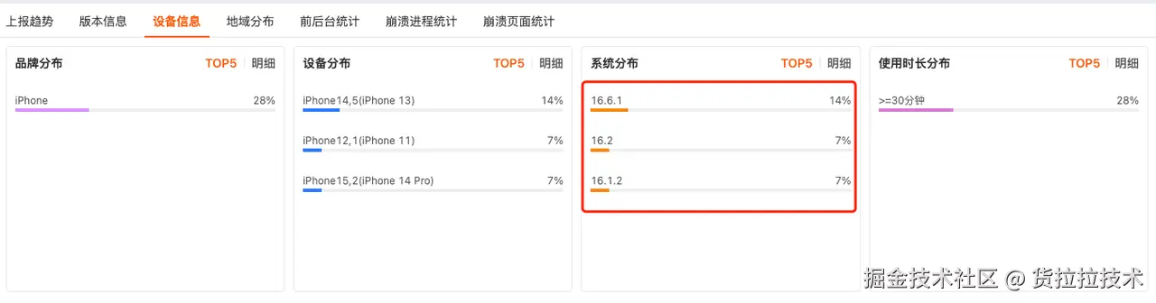 从目前崩溃系统统计来看,只会发生在iOS16及以上的系统。因此很明显这是一个苹果系统版本升级所引入的崩溃。